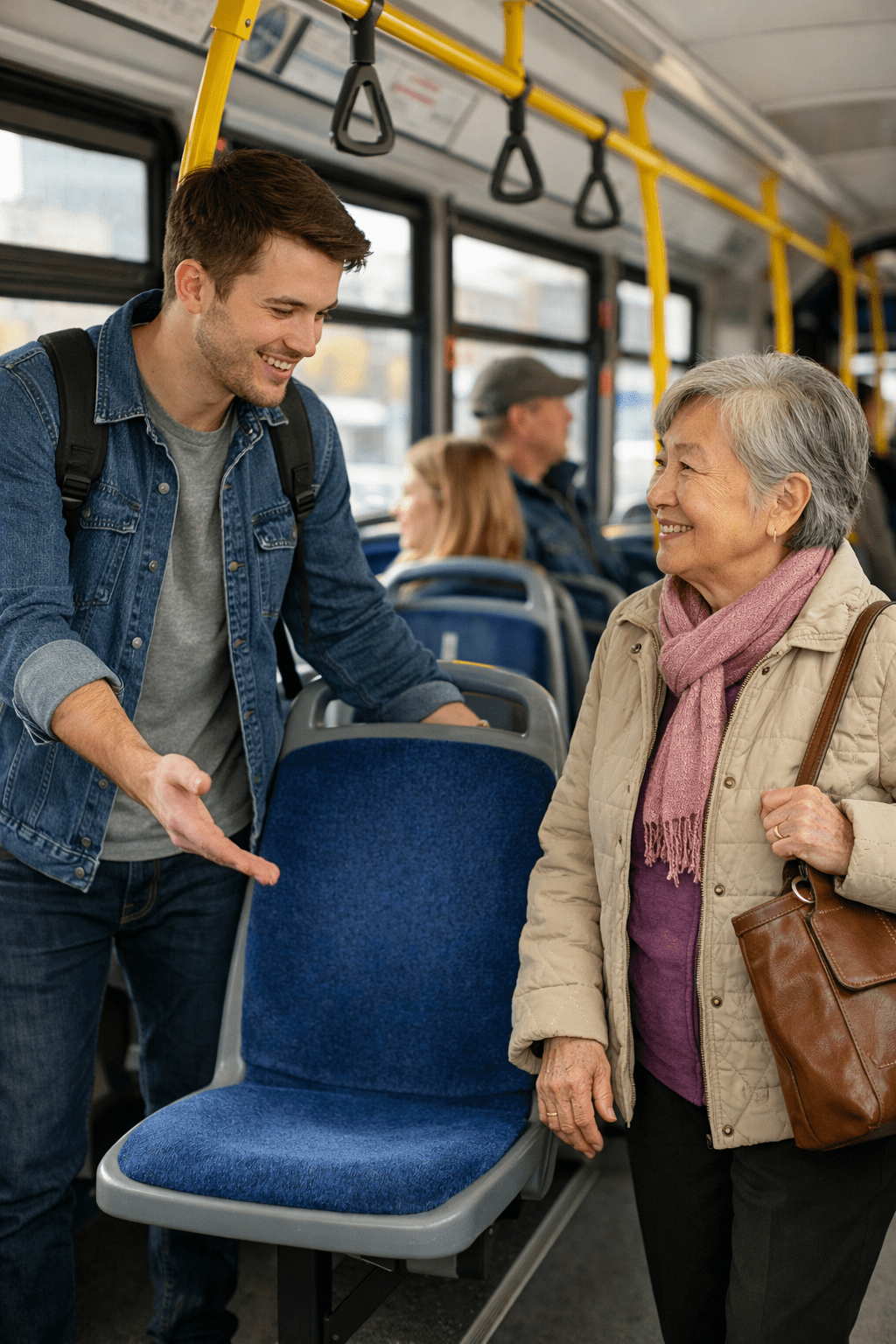 An offered seat is more than a practical favor; it’s a small act of care that acknowledges someone’s awareness of your comfort or need. How you respond affects the giver’s dignity as well as your own: accepting graciously validates their kindness, while declining carefully can avoid awkwardness or offense. In public settings, these exchanges also shape the social tone — quiet, courteous interactions help everyone feel respected.